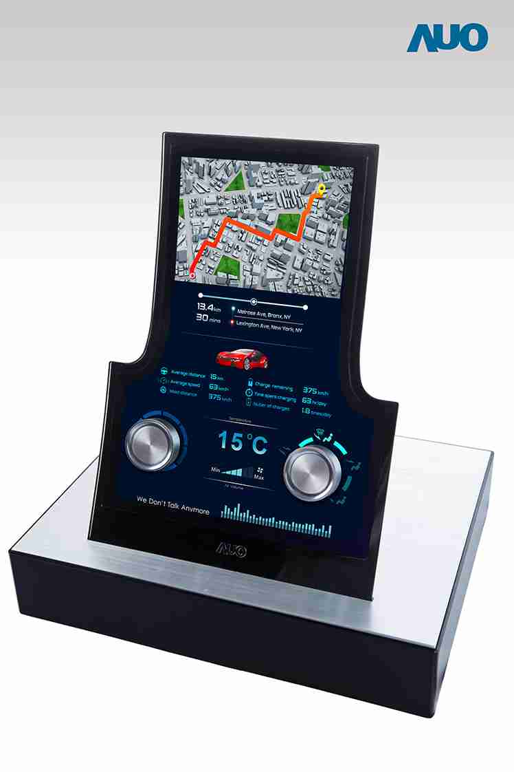 12.3 寸 Full HD LTPS 显示屏同样具备 1000 nits 高亮度,,,,搭载内嵌式触控技术,,整合驱动与触控 IC 于显示屏制程,,,使显示屏厚度降低,,为中控台创造更多机构设计空间。。应用于抬头显示器的 3寸 LTPS 显示屏具有高穿透率、、、1200:1 高对比度度,,,,以及 297 PPI 高画素密度。。液晶最高可耐受到 110C 的高温 (TNI) 而不液化,,在阳光高温下维持优异稳定的显示效果。。。。