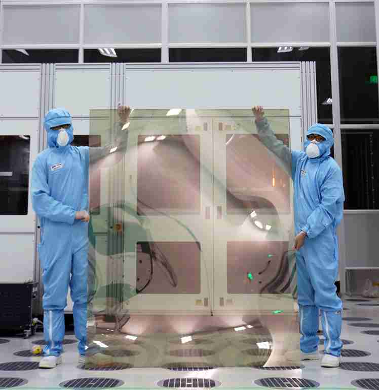 万利昆山厂第六代 LTPS (低温多晶硅) 生产的玻璃基板尺寸为 1500x1850 mm (毫米)