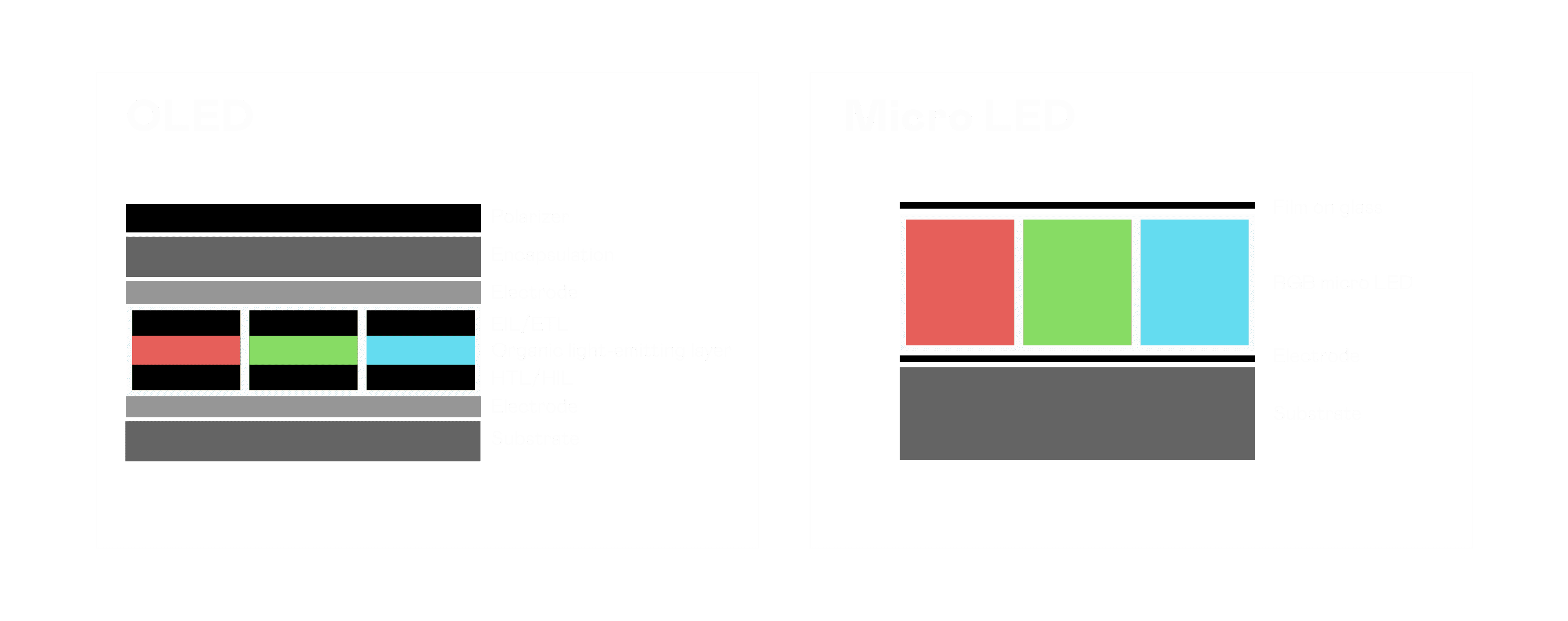 以 LED 做为显示画素,,,可让 LED 的发光效率发挥到极致,,,,从而让显示器具备优异的亮度表现,,不论是在户外或室内,,,,均具备出众的显示效果。。。。同时,,,,与使用有机材料的 OLED 相比,,,LED 具备更稳定、、、、寿命更长的特性,,,,不仅不会有画面烙印问题,,而且更不容易出现故障、、坏点。。