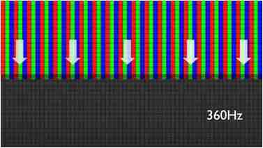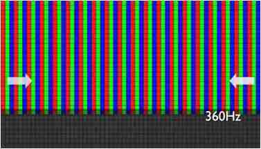 传统液晶驱动是从左到右单向进行,,,在画面更新速度愈来越愈快的情况下,,,,位于驱动线路末端的右下角区域,,,,画素的闸极来不及在短时间内获得足够电压,,,无法显示出正确的颜色资讯。。。 |